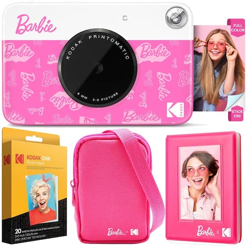 - BARBIE X KODAK: Esta fabulosa e icônica câmera rosa BARBIE x Kodak é sua melhor companheira para diversão instantânea. Coloque esta joia Barbie de bolso em sua bolsa e tire memórias em movimento.