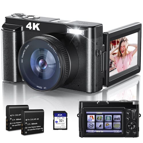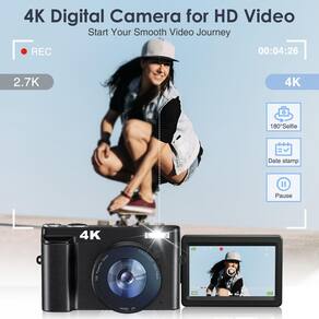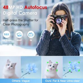 - 📸 Câmera fotográfica UHD de 48MP: A câmera digital para fotografia tem uma resolução de imagem de 48MP e um sensor de imagem CMOS de 8MP. Os recursos de foco automático tornam a câmera digital de tela giratória de 180° para iniciantes que desejam tirar fotos em HD rapidamente e tirar textos ou retratos em HD de perto sem muito trabalho, e a câmera digital com zoom de 16x também pode fotografar paisagens à distância, para capturar todos os momentos que você quiser com clareza!