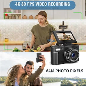 -?Câmera digital 4K de 64 MP e foco automático?Esta câmera digital 4K de 64 MP oferece imagens de alta resolução, perfeitas para iniciantes que desejam capturar fotos nítidas e nítidas. Com a tecnologia de foco automático, ela simplifica o processo de obter a foto perfeita. Se você está capturando cenas dinâmicas ou momentos do dia a dia, esta câmera facilita a fotografia, permitindo que você se concentre na criatividade sem se preocupar com problemas de foco