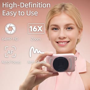 Câmeras digitais sem espelho, câmera digital de 64 MP com armazenamento de 64 GB, zoom de 16x, tela HD real de 2,8 polegadas, antivibração, câmera digital de bolso fácil de usar para crianças e geração Z, câmera digital rosa - Câmera digital fácil de usar de 64 MP: esta câmera digital está equipada com um sensor de imagem BI CMOS da série IMX, capaz de produzir fotos com resolução de até 64 MP. Possui foco automático, zoom de 16X e estabilização de imagem digital, proporcionando desempenho excepcional de fotografia. Projetada como uma câmera simples de apontar e disparar com modos de disparo adaptáveis, é perfeita para iniciantes ou até mesmo crianças. Não é necessário treinamento profissional; basta pressionar o obturador para capturar fotos claras e estáveis sem esforço, permitindo que você aproveite a diversão de fotografar e gravar os momentos da vida com facilidade. - ?Recursos abrangentes?O design de flash duplo garante excelente qualidade de foto mesmo em ambientes com pouca luz. Com uma tela que oferece o dobro da clareza de outras câmeras point-and-shoot, o que você vê é o que você recebe ao capturar fotos. Esta câmera inclui gravação de vídeo Full HD, câmera de beleza, detecção de rosto, vários modos de cena, captura de sorriso, tiro com temporizador, modo burst, filtros criativos, parâmetros de disparo personalizáveis, desligamento automático de economia de energia e pode até funcionar como uma webcam de computador. Todos os recursos que os usuários adoram são encontrados nesta câmera digital. - Bateria embutida, cartão de memória de 64 GB?A câmera digital vem com uma bateria embutida de 1200 mAh, oferecendo mais do que o dobro da vida útil da bateria das câmeras point-and-shoot tradicionais sem a necessidade de substituições frequentes de bateria. Possui uma porta de carregamento/dados tipo C, compatível com a maioria dos adaptadores convencionais e carregadores portáteis, eliminando a necessidade de carregar muitos acessórios adicionais de câmera. A câmera digital vem pré-instalada com um cartão microSD de 64 GB, capaz de armazenar mais de 20.000 fotos no modo padrão, para que você possa começar a usar a câmera direto da caixa sem a necessidade de comprar um cartão de memória extra. - Design portátil, corpo leve: com design industrial profissional, a câmera oferece uma estrutura compacta e portátil que pode ser facilmente manuseada com uma mão por adolescentes. Graças aos componentes eletrônicos altamente integrados, o peso da câmera é mantido em impressionantes 120 g, facilitando o uso até mesmo para uma criança de 5 anos. - 🎁?Excelente serviço, o presente perfeito?Oferecemos uma política de devolução sem perguntas de 7 dias e uma garantia de um ano, com resposta rápida do atendimento ao cliente. Se você está comprando para você ou como um presente para seus filhos ou amigos, oferecemos o melhor suporte ao cliente. Se você tiver alguma dúvida sobre o produto, não hesite em entrar em contato conosco diretamente, e faremos o nosso melhor para resolver quaisquer problemas que você possa ter. [Encontre o pedido e selecione "Entrar em contato com o vendedor"] - Lista de produtos: 1 câmera digital; 1 cartão microSD de 64 GB; 1 cabo de carregamento/dados USB-C; 1 leitor de cartão microSD; 1 cordão de pulso; 1 cordão de pescoço; 1 bolsa portátil para câmera; 1 lenço de lente; 1 x guia rápido; 1 manual do usuário (sem garantia de versão em português)