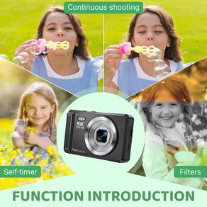 - 📷 Câmera digital compacta criativa - Essa câmera digital barata é sua companheira perfeita para vlogs, oferecendo recursos como lapso de tempo, câmera lenta e filtros integrados. Capture vídeos e imagens exclusivos com facilidade e deixe sua criatividade brilhar. A câmera digital para crianças é uma excelente opção para iniciantes e entusiastas, seja para conteúdo de mídia social ou projetos pessoais.