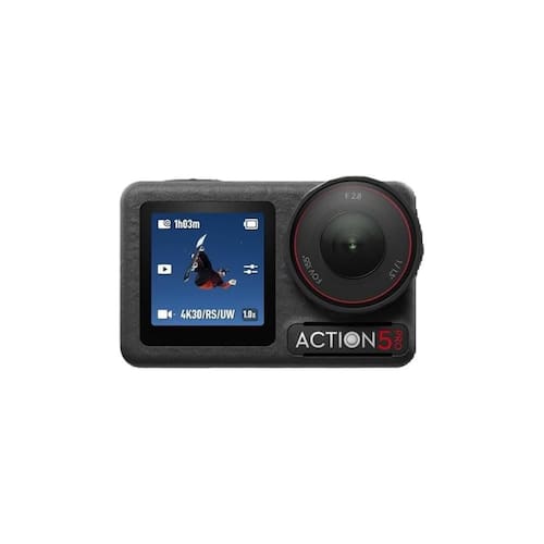 Possui tela frontal e traseira sensíveis ao toque, facilitando enquadramentos para vlogs e gravações em primeira pessoa. Seu corpo é robusto, resistente à água até 18 metros sem case adicional, além de suportar temperaturas extremas.