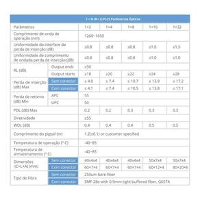 Descricao O Cabo Optico Splitter Evus OPF-PLC1X2-NC250 PLC (Planar Lightwave Circuit) ou divisor de fibra optica, baseia-se num substrato de quartzo que serve como guia de ondas, atuando como um dispositivo de distribuicao de energia. Seu funcionamento e similar aos divisores utilizados em sistemas de transmissao de cabo coaxial. O Cabo Optico Splitter Evus OPF-PLC1X2-NC250 e especialmente adequado para a instalacao de pequenos espacos e pode ser facilmente utilizado na construcao de rede FTTx, construcao de redes opticas, redes CATV e etc.Caracteristicas: Baixa perda de insercao e baixa PDL Ampla faixa de comprimento de onda Design compacto Grande faixa de operacao e temperatura Embalagem e configuracao customizadaAplicacoes: FTTX (FTTP, FTTH, FTTN, FTTC) Redes oticas passivas analogicas/digitais (PON) Redes de area local (LAN) Equipamentos de teste CATVSplitter Optico PLC 1x2ANATEL 01532-19-10548*Imagens meramente ilustrativas.Especificacao Tecnica O Cabo Optico Splitter Evus OPF-PLC1X2-NC250 PLC (Planar Lightwave Circuit) ou divisor de fibra optica, baseia-se num substrato de quartzo que serve como guia de ondas, atuando como um dispositivo de distribuicao de energia. Seu funcionamento e similar aos divisores utilizados em sistemas de transmissao de cabo coaxial. O Cabo Optico Splitter Evus OPF-PLC1X2-NC250 e especialmente adequado para a instalacao de pequenos espacos e pode ser facilmente utilizado na construcao de rede FTTx, construcao de redes opticas, redes CATV e etc.Caracteristicas: Baixa perda de insercao e baixa PDL Ampla faixa de comprimento de onda Design compacto Grande faixa de operacao e temperatura Embalagem e configuracao customizadaAplicacoes: FTTX (FTTP, FTTH, FTTN, FTTC) Redes oticas passivas analogicas/digitais (PON) Redes de area local (LAN) Equipamentos de teste CATVSplitter Optico PLC 1x2ANATEL 01532-19-10548*Imagens meramente ilustrativas.