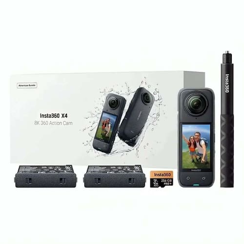 Entre no mundo do vídeo cinematográfico 360° com a compacta câmera Insta360 X4 360° 8K , capaz de capturar vídeo 8K 30fps 360° em modos de lente dupla ou única, tudo em uma câmera de ação portátil. A X4 oferece um design pronto para ação com software alimentado por IA para uma abordagem intuitiva para criar conteúdo dinâmico em qualquer ambiente, bem como proteções de lente removíveis, captura de até 5K 120fps "Bullet Time" e lapso de tempo de 11K. A X4 também tem um design robusto atualizado, é nativamente à prova d'água até 10m e tem uma bateria recarregável de 2290mAh atualizada para maior tempo de execução.