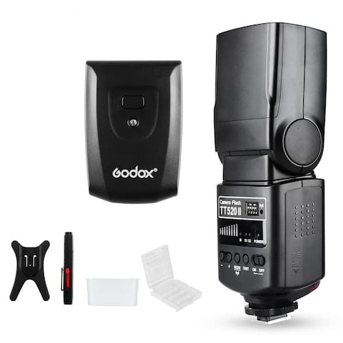 Godox TT520II Flash universal para câmera flash eletrônico Speedlite transmissão sem fio para câmera Canon, Nikon, Panasonic, Olympus, Pentax, DSLR - Godox TT520II Speedlite Flash: GODOX Speedlight tem transmissão sem fio de 433 MHZ, transmissor RT e 16 canais para fotografar. Várias proteções automáticas para economizar energia e superaquecimento. Compatível com Canon Nikon Panasonic Panasonic Olympus Pentax e outras câmeras DSLR com sapatos quentes padrão. Observação: não suporta TTL e função de configuração de câmera. - Funções poderosas: Velocidade de flash de 1/300-1/20000s, proporcionando imagens nítidas, claras e vívidas. 8 saídas de flash variáveis de 1/128 a completo, atendem à sua demanda de flash. - 3 modos de flash: a câmera flash tem modos M, S1 e S2, para melhorar a versatilidade e usabilidade. Distância de transmissão sem fio de 15 metros, transmissão óptica com iluminação e saída estáveis. - Compatibilidade: várias proteções automáticas para economia de energia e superaquecimento. O flash GODOX TT520II Speedlite é compatível com câmeras DSLR Canon Nikon, Olympus, Pentax Fuji. - Gatilhos sem fio: reflete sombras suaves com o objeto para uma aparência natural. embutido com transmissor RT, transmissão sem fio e 16 canais para acionamento.