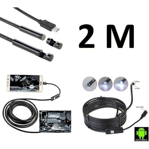 2m de cabo, camera de 7 milímetros a prova d'água endoscópica usb e android com 6 leds com iluminação ajustável, assista direto no celular.
