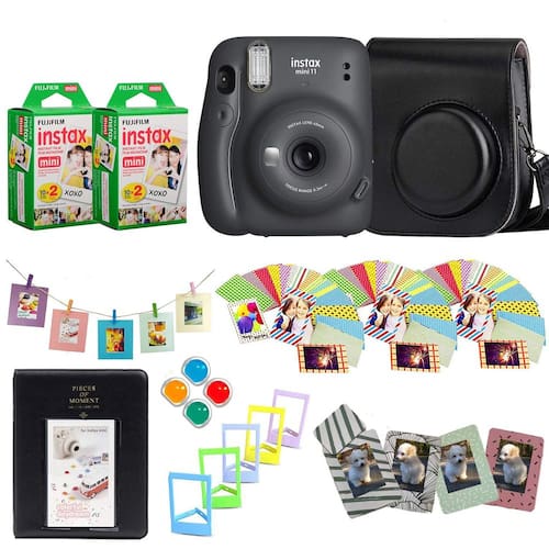 ENFEITE SUA CÂMERA — escolha entre um botão de joia ou um botão brilhante para dar um toque extra à sua câmera. O PACOTE INCLUI câmera, 40 folhas de filme Instax, estojo combinando, 5 molduras magnéticas, kit de filtro de 4 peças (vermelho, azul, verde, amarelo), álbum, conjunto de molduras suspensas de 10 peças, conjunto de molduras de mesa de 5 peças e 60 molduras adesivas para adicionar tempero e personalidade às suas fotos