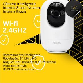 Câmera Inteligente Wi-Fi Nuvem Interna EKAZA Visão Noturna Câmera Inteligente Wi-Fi Nuvem Interna EKAZA Visão Noturna A Câmera Inteligente Wi-Fi Nuvem Interna EKAZA Visão Noturna é a solução perfeita para quem procura segurança e conveniência em um único dispositivo. Principais Características: Conexão com nuvem: A integração com a nuvem possibilita o armazenamento seguro e acessível das gravações, permitindo visualizar as imagens de qualquer lugar e a qualquer momento. Alta resolução: Com qualidade de imagem em resolução máxima de 3MP Ultra HD 2K 2304x1296 , você terá detalhes nítidos em cada cena capturada. Visão noturna: A função de visão noturna com 4 LEDs infravermelhos oferece monitoramento eficaz mesmo em ambientes com pouca iluminação, garantindo segurança 24 horas por dia com alcance de até 10m. Detecção de movimento: Receba notificações em tempo real sempre que a câmera detectar movimentos, mantendo você informado sobre o que acontece em sua residência ou escritório. Mais Detalhes do Produto: Controle via aplicativo: Acesse a câmera remotamente através do aplicativo dedicado, visualizando as imagens em tempo real e ajustando as configurações de forma simples e intuitiva. Compatibilidade com assistentes de voz: Integre a câmera com assistentes virtuais como Alexa e Google Assistant para facilitar o controle do dispositivo. Armazenamento: Suporta armazenamento em nuvem e em Cartão TF de até 256GB não incluso , oferecendo opções de backup para suas gravações. Especificações: Modelo: EKGD-T4117 Lente: 2.8mm 108 Resolução Máxima: 3MP Ultra HD 2K 2304x1296 Visão Noturna: 4 LEDs Infravermelhos, alcance de 10m Conexão: Wi-Fi 2.4 GHz, Bluetooth, Onvif Fonte de Energia: DC5V 1A Armazenamento: Nuvem, Cartão TF até 256GB, não incluso Ângulo de rotação: H 355; V 110 Áudio Entrada/Saída: Intercomunicador de voz bidirecional Segurança: WEP/WPA/WPA2 Temperatura de operação: -10C 50C / 95% sem condensação Aplicativos: Ekaza, Android, Tuya, Smart Life e NovaDigital. : 12 meses contra defeitos de fabricação da EKAZA. Dicas de Utilização: Posicione a câmera estrategicamente para obter o melhor ângulo de visão da área desejada. Ajuste a sensibilidade de detecção de movimento para evitar notificações excessivas. Verifique regularmente a conexão Wi-Fi para garantir a transmissão contínua das imagens. Observação: é importante ter uma rede Wi-Fi 2,4GHz com boa capacidade para gerenciar os dispositivos de forma eficaz. Instabilidades na conexão podem interferir na resposta aos comandos via aplicativo e assistentes de voz, e na execução de rotinas automáticas. Recomenda-se consultar um técnico da operadora para garantir uma conexão estável. Homologação Anatel: 149822010251 Marca: Não Informado Ean: 7908228403081