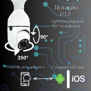 - Navegação panorâmica com PTZ giro horizontal de 360 graus e vertical de 90 graus . - Resolução HD 1080p. - Conexão wifi de 2.4GHz. - Alimentação bivolt 110V/220V. - Alcance da visão noturna de 20 a 25 metros. - Permite gravação em nuvem serviço pago oferecido pelo aplicativo ou no cartão de memória não incluso . - Suporta cartão de memória micro SD de 8GB a 128GB não incluso . - Homologação Anatel: 025931304858.