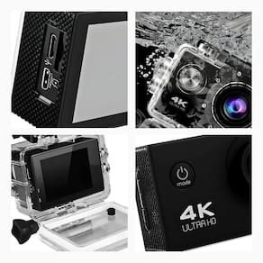 - Ideal para atividades como esportes extremos, ciclismo, motocross, escalada, mergulho, e até mesmo como câmera de segurança doméstica. Pode ser utilizada para registrar suas aventuras em qualquer ambiente, seja na terra, no ar ou na água.