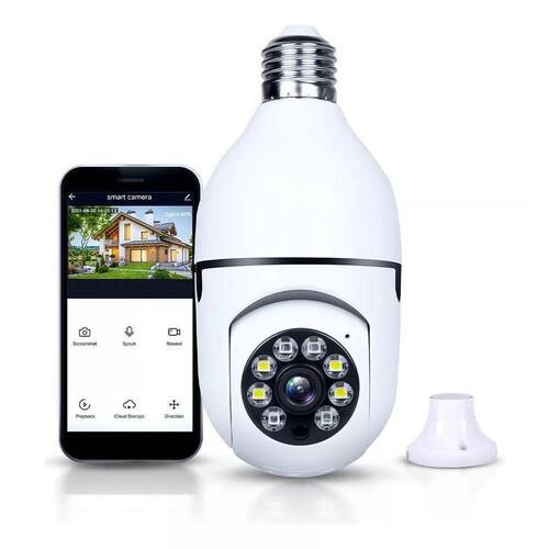 ESPECIFICAÇÕES: Aplicativo: Yoosee Cor do produto: Branco Tamanho: 15,5 x 7,1cm Lente: 3.6mm lente padrão Alta Definição: 1080p Full HD 2MP Conexão Wifi: 2.4ghz não funciona no 5GHz Microfone embutido: Canal de áudio Armazenamento por Cartão SD: Não acompanha Cartão de Memória Áudio bidirecional possibilitando a conversa entre o celular e a câmera Grau de proteção: IP44 Consumo de energia: 3w Compressão de vídeo: Smart H264 Bocal: E27 110-240V