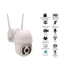 Rotação: 320 Horizontal - 110 vertical Resolução: FULL HD 1920x1080p . Dispensa o uso de DVR mas também é compatível Trabalha com a tecnologia WIFI Sem fio ou com cabo de rede Padrão Rj45 . Lente: 3.6mm Acompanha fonte Bateria interna: Não Led infravermelho: Sim - 4 leds de alto brilho Alcance: 30 metros. Slot para cartão: Sim - até 64gb Conexão: WIFI wireless ou cabo de rede Padrão Rj45 Compatibilidade: Android / Ios Microfone: Sim Alto-falante: Sim
