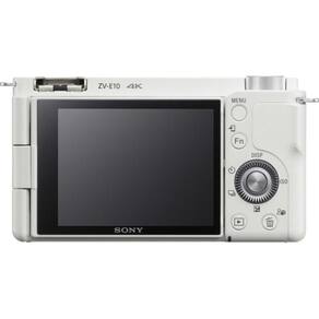 Câmera sony zv-e10 mirrorless kit com lente 16-50mm branca Sensor cmos exmor aps-c de 24,2 mp Vídeo uhd 4k30p e full hd 120p Lcd sensível ao toque lateral de 3,0 Af híbrido rápido de 425 pontos Disparo de até 11 fps, iso 100-32000 Af e rastreamento de olhos em tempo real Desfocagem de fundo e prioridade facial ae Microfone direcional de 3 cápsulas e pára-brisas Portas de fone de ouvido e microfone Lente e pz 16-50mm f/3.5-5.6 oss