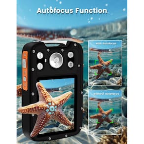 -?Câmera impermeável 4K Ultra HD e 48MP com foco automático?Esta câmera à prova d'água captura imagens coloridas HD de 48 MP e suporta gravação de vídeo 4K Ultra HD para gravar claramente seus vídeos de viagens subaquáticas. Não é necessário pressionar o obturador até a metade para focar. Basta apontar a câmera para o objeto até que ele fique bem focado e, em seguida, pressionar o obturador para capturar a imagem desejada.