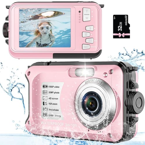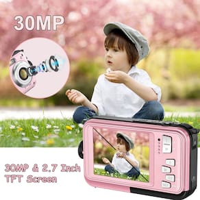 câmera subaquática - ?Resolução de vídeo HD 1080p? Esta câmera digital à prova d'água atualizada suporta vídeos 1080p e captura momentos emocionantes e inesquecíveis. Atende totalmente às suas necessidades, você pode desfrutar de um bom tempo com amigos, família. É uma ótima escolha para crianças. - ?Tela TFT de 2,7 polegadas e 30MP?A câmera digital está equipada com tela colorida de alta qualidade de 2,7 polegadas que você pode verificar a melhor foto que tirar. A resolução de imagem de 30 MP torna suas fotos mais claras. Basta levá-lo para sua viagem e aproveitar o tempo de filmagem. - ?Função anti-vibração e disparo contínuo?Esta câmera à prova d'água tem função anti-vibração e 6 disparos rápidos contínuos. Pode ajudá-lo a tirar fotos incríveis e você não perderá todos os momentos preciosos. - ?Impermeável até 3 metros?A função à prova d'água faz com que esta câmera digital possa ser submersa a 3 metros debaixo d'água sem uma capa à prova d'água. Você pode levá-lo para mergulho, acampamento, mergulho e outras atividades. Para levá-lo e você não perderá nenhum cenário que queira gravar. - ?Suporta carregamento durante a gravação? Esta câmera à prova d'água suporta gravação durante o carregamento, você não precisa se preocupar com o desligamento da bateria durante sua viagem. Lembre-se de comprar um cartão SD de boa qualidade classe 10 com 128 GB. Certifique-se de que a bateria esteja firmemente fechada e a tampa da bateria trava de segurança.