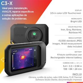01 Câmera Termográfica Compacta 01 Bateria 01 Cabo USB 2.0 Tipo A - Tipo C 1,0 m Preto (T911940ACC)
