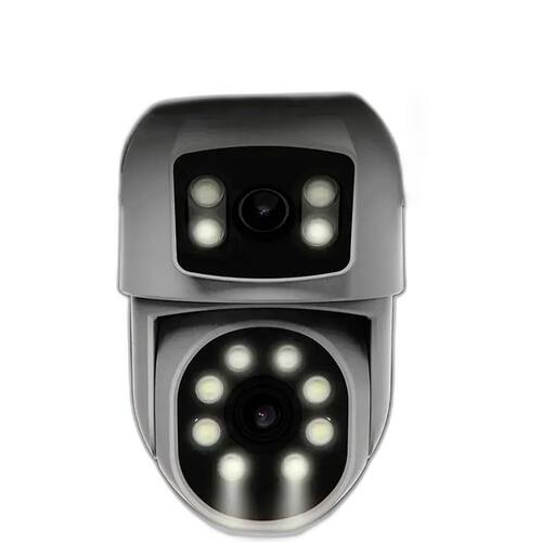 Lente dupla, tela dupla, alarme de luz policial, rastreamento humanóide, monitoramento de interfone de voz bidirecional 360, visão noturna colorida, IP66 à prova d'água, monitoramento remoto de telefone celular, compartilhar vídeo, armazenamento do cartão do SD, 24 horas gravação video.