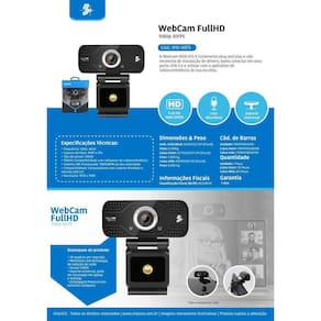 Caracterísitcas do Produto: Com a Webcam Full HD da 5+ ficou mais fácil fazer suas reuniões e chamadas de vídeo com os amigos A Webcam Full HD 5+ não precisa de software de instalação, basta conectar no desktop ou notebook e utilizar da forma que quiser. Especificações: -frequência: 50Hz, 60Hz -captura de fotos: BMP e JPG -tipo de sensor: CMOS -TWAIN: Compatibilidade com softwares de videoconferência. -sistema VM: Processador 180M/BPM de alta velocidade -compatibilidade: Computadores com sistema Windows e entrada USB 2.0 -resolução: 1920 x 1080 Garantia: -1 ano