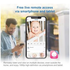 Mantenha se conectado com seu bebê através da câmera VTech RM9751 Yellow Daisy Smart WiFi. Com acesso remoto via smartphone e tablet, você pode ouvir e visualizar seu filho em alta definição 1080p em vários dispositivos, mesmo fora de casa. Além disso, o modo de privacidade é ativado facilmente deslizando a abelha sobre a lente da câmera, garantindo que ninguém mais possa ver seu bebê.