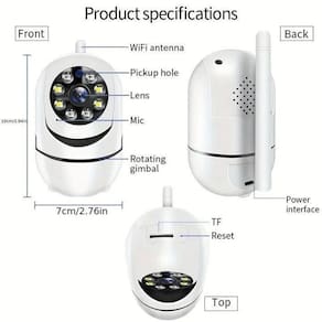 Especificações: 1. Resolução: 1.0mp 2. Cor: branco 3. Peso: 0,298 quilogramas Conexão 4.Network: wifi, ap hotspot 5. Rede: transmissão sem fio wifi protocolo sem fio do apoio leee802.11b/g/n . 6. Visão noturna: interruptor do ir-cut Automático, aproximadamente 5-8 medidores varia do ambiente . 7. Áudio: microfone embutido e alto-falante, suporte de áudio bidirecional e transmissão em tempo real, padrão de compressão de áudio Adpcm, auto-adaptar ao fluxo de código. 8. Alarme: detecção do movimento e impulso video do alarme. 9. Cartão tf 128g máximo ; armazenamento em nuvem/disco cloud opcional . 10. Temperatura de trabalho:-10 c + 50 c Umidade de trabalho: = 95% rh.