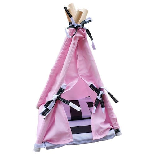 Produto fácil de montar, transportar e limpar.Pode ser utilizado em casas e apartamentos.Confeccionada em tecido de algodão e poliéster, estrutura de madeira de reflorestamento ecológica , espuma e protetores de borracha, para não arranhar pisos.Medindo aproximadamente:65 altura externa55 cm altura interna x 45 cm largura x 45 cm profundidadeCompõe o produto:01 cabana01 colchonete / cama04 hastes de madeira Marca: Pet Best