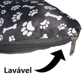 Informações do produto: - Contém: 1 Cama Pet - Medidas 100cm X 78cm - Tamanho: G - Fácil limpeza - Tecido lavável (somente a espuma que não) - Não retém pelos - Bordas com enchimento de flocos de espuma ensacada - Super macia e aconchegante - Promove alívio muscular e relaxamento - Enchimento macio e confortável que ajuda a combater a ansiedade e o stress do pet - Material superior de oxford que garante conforto e durabilidade - Material inferior napa seme impermeável - Indicado para Cachorros e Gatos - Cor: Preto (a estampa segue conforme disponibilidade do fornecedor, pode ser igual ou semelhante a imagem ilustrada).