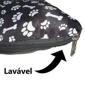 Informações do produto: - Contém: 1 Cama Pet - Medidas 100cm X 78cm - Tamanho: G - Fácil limpeza - Tecido lavável (somente a espuma que não) - Não retém pelos - Bordas com enchimento de flocos de espuma ensacada - Super macia e aconchegante - Promove alívio muscular e relaxamento - Enchimento macio e confortável que ajuda a combater a ansiedade e o stress do pet - Material superior de oxford que garante conforto e durabilidade - Material inferior napa seme impermeável - Indicado para Cachorros e Gatos - Cor: Preto (a estampa segue conforme disponibilidade do fornecedor, pode ser igual ou semelhante a imagem ilustrada).