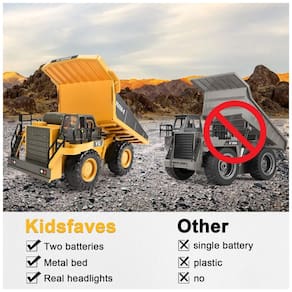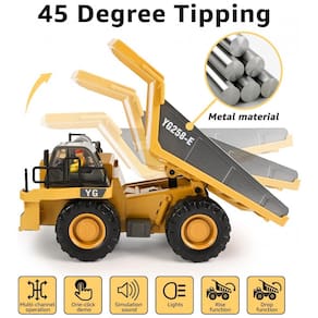 Controle Responsivo de 2.4Ghz: O controle remoto possui um potente transmissor de 2.4GHz, que suporta vários carrinhos de brinquedo funcionando ao mesmo tempo sem interferir entre si, emparelhando automaticamente ao ligar. Funções Diversas: O caminhão basculante pode levantar a caçamba em um ângulo de 45 graus, girar em todas as direções, e dirigir automaticamente. A cama feita de aço real suporta até 3kg de carga. Design de Alta Qualidade: Este brinquedo para meninos com volante em miniatura é mais amigável, com duas baterias para proporcionar mais tempo de jogo às crianças, dobrando a diversão. Desenvolve Habilidades: Este caminhão basculante, junto de outros brinquedos de construção, adiciona mais diversão e ajuda a desenvolver a habilidade motora e o pensamento independente das crianças, favorecendo o crescimento saudável e feliz. A Melhor Escolha de Presente: Os Brinquedos de Veículos de Construção são ideais para diversas ocasiões, como aniversários, Natal, Ação de Graças. A criança ficará muito feliz ao receber este presente.
