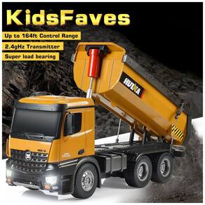DESEMPENHO PODEROSO: O caminhão basculante de controle remoto possui um motor potente, caçamba completa em liga metálica e pneus de borracha resistente, podendo transportar mais de 7 kg! Simule um caminhão basculante real, carregue e descarregue sujeira, pedras e tijolos para uma experiência realista. TEXTURA DE ALTA QUALIDADE: Feito de liga metálica e material ABS de alta qualidade, é mais resistente a quedas do que plásticos comuns. Projetado de acordo com o protótipo de caminhão basculante 1:14, os detalhes são realistas e satisfazem completamente a diversão das crianças em explorar veículos de engenharia. FUNÇÕES VARIADAS: O caminhão de controle remoto com 10 canais possui efeitos sonoros e luzes simuladas, hastes hidráulicas retráteis e experiência de direção realista com movimentos para esquerda, direita, frente e ré. Mais do que apenas um brinquedo, proporciona aos entusiastas uma experiência de nível profissional. PRESENTE DIVERTIDO E ÚNICO: Este caminhão basculante de controle remoto é o presente educativo perfeito para qualquer criança interessada em ciência, veículos de construção e muito mais! Ideal para presentear crianças em aniversários, Natal, Ação de Graças, Páscoa e outras ocasiões.