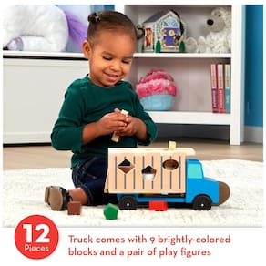 Este brinquedo de madeira multifacetado é composto por um caminhão basculante e nove blocos de madeira coloridos e moldados que se encaixam em recortes em três lados do caminhão. As rodas do caminhão rolam suavemente para entregar os blocos em qualquer lugar, e a porta traseira pode ser levantada e o contêiner inclinado para despejar os blocos e começar de novo. O brinquedo ajuda a ensinar o reconhecimento de formas e cores e incentiva a criatividade e a imaginação. Ele inclui duas figuras de brincar e é recomendado para crianças de 2 a 5 anos. O caminhão classificador de formas é feito de materiais duráveis e montado com precisão para garantir uma construção robusta e resistente ao uso frequente. É um presente educativo para crianças e pode ser combinado com o carregador magnético de carro Melissa Doug para oferecer às crianças uma opção envolvente para diversão sem tela. A Melissa Doug é uma empresa que cria produtos inovadores há mais de 25 anos, e seus brinquedos são conhecidos por estimular a imaginação e a criatividade das crianças.