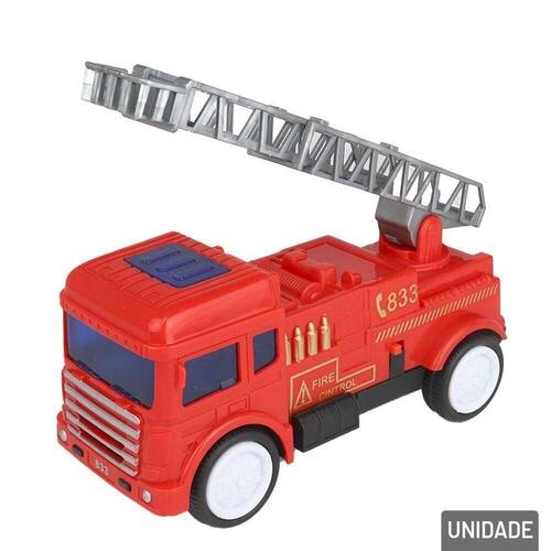 Caminhão Bate e Volta Bombeiro com LUZ e Son Caminhão de plástico com movimento Bate e Volta Bombeiros com luzes coloridas e som de bombeiros.\nPossui uma escada de salvamento articulada que sobe e desce.\nUtiliza 3x pilhas AA (não inclusas).\nEspecificações:\nMarca : ARK BRASIL\nTipo de material : Plástico, Componentes Eletrônicos\nCores ou Estampa : Vermelho\nDimensões do Produto : 10 X 17 X 6,5 CM\nDimensões da Embalagem : 10 X 17,5 X 7,5 CM\nPeso Bruto (Gramas) : 0.171