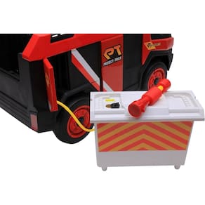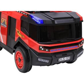 Rádio comunicador com sistema de som integrado. Sirene e giroflex funcionais. Mangueira que esguicha água de verdade. Faróis de LED para mais realismo. Assento duplo com cinto de segurança. Sistema de som com entrada USB, AUX e MicroSD. Duas marchas: frente (com duas velocidades) e ré.
