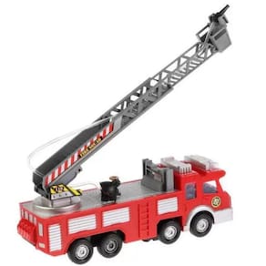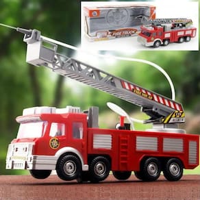 Caminhão de Bombeiro que lança água de verdade!!! Emite som de sirene e acende luzes. Feito em Abs resistente e brilhante, escada com regulagem de altura, giro de 180° graus e tanque de abastecimento, É só encher de água o reservatório, e usar a bomba d'água para esguichar onde quiser !!! A imaginação não terá fim e vai render horas de diversão!