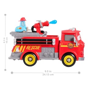 Ele vem com um Guido não removível, pronto para auxiliar em todas as missões de resgate! Equipado com um inovador lançador de água: basta puxar Guido para trás para revelar o lançador e carregar os projéteis de água, permitindo que as crianças "apaguem" as chamas de forma interativa. Elaborado com plástico de alta qualidade e projetado para proporcionar horas de diversão imaginativa, este brinquedo permite que as crianças recriem cenas de ação e salvamento.