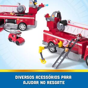CAMINHÃO DE BOMBEIRO. Experimente missões de resgate emocionantes com o Ultimate Rescue Fire Truck do Marshall e 3 figuras da Patrulha Canina! SOBRE O CONJUNTO. Veículo com escada extensível de 60 cm, luzes e sons ativados ao levantar e puxar. Inclui figuras de Marshall, Chase e Skye, mini carrinho e canhões de água. INCENTIVE A CRIATIVIDADE. Aventure-se em resgates com a escada giratória, luzes e sons realistas. Dispare água com os canhões e use a garra para agarrar objetos em suas missões. VIVA A BRINCADEIRA. Transforme cada brincadeira com o caminhão de bombeiros em uma missão emocionante, aproveitando todas as funcionalidades e figuras inclusas para criar histórias incríveis. UMA INFÂNCIA MÁGICA COM SUNNY. Há mais de 15 anos, a Sunny faz a ponte entre o mundo do faz de conta e os apaixonados por brinquedos, sempre mudando a brincadeira e garantindo que ela nunca acabe.