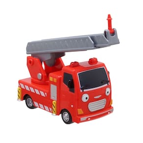 Brinque com o caminhão de bombeiros "Frank". Basta puxá-lo para trás para seguir em frente. possui uma escada giratória e extensível. - A série Little Bus Tayo - O caminhão de bombeiros "Frank" - Possui escada móvel - Tamanho do pacote: 14,9 x 8 x 16,4 cm - Idade: 36 meses +