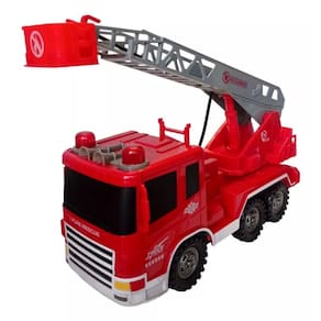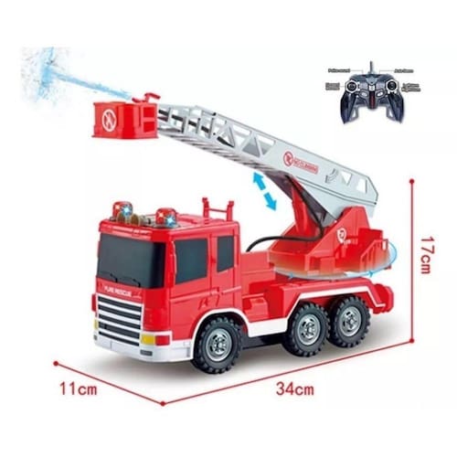 Caminhão de bombeiros de 34 cm com luzes e som6 canais, que controlam a parte frontal direita, esquerda, buzina e torre da escada\ nInclui medidores manualmente\ nÉ rápido e fácil de manusear, longo alcance de 2,4 GHzControle remoto\ NModo de carregamento: USB\ NCapacidade da bateria: 3,7 V 800 mAh recarregável\ nControle remoto: 3 pilhas AA (não incluídas)