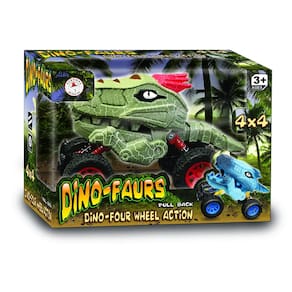 - INCLUDES one dinosaur truck with amazing pull back action. Works on carpet too. Size: 7" L x 4. 5" H x 4"w