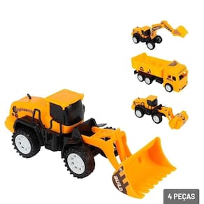 Caminhão de Fricção 4 Peças Construção Feito de plástico de alta qualidade, o que o torna leve e durável, adequado para crianças.\nMecanismo de fricção, onde o Caminhão ou Trator é impulsionado para frente e depois se move por conta própria por um curto período de tempo, utilizando a energia acumulada.\nPossui partes móveis ou junções que podem se dobrar ou se mover. Isso permite ao Caminhão ou Trator imitar movimentos de veículos reais articulados, como Caminhões de transporte pesado.\nDiferentes tipos de Caminhões ou Tratores de carga, com designs variados e detalhes específicos.\nContém 4 Veículos.\nEspecificações:\nMarca : DDG\nTipo de material : Plástico\nCores ou Estampa :\nDimensões do Produto : 23 X 44 X 7,5 CM\nDimensões da Embalagem : 23 X 44 X 7,5 CM\nPeso Bruto (Gramas) : 0.445