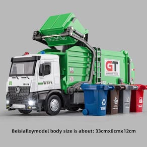 Material: liga, ABS, componentes eletrônicos Cor: verde Tamanho do pacote: 33 x 8 x 12 cm Peso do pacote: 0,5 kg Lista de embalagem: 1 x caminhão de brinquedo Design realista de caminhão de lixo: este brinquedo de caminhão de lixo extra grande foi projetado com incrível atenção aos detalhes, incluindo uma cor verde, caixas de coleta de lixo e características realistas, perfeito para crianças que amam veículos urbanos e de construção. Construção durável em liga fundida: Feito de liga fundida de alta qualidade e plástico ABS, este caminhão é resistente e construído para durar, tornando-o uma excelente escolha para um jogo duradouro, mantendo sua cor verde vívida e design detalhado. Jogo educativo de classificação de lixo: O caminhão vem com lixeiras, incentivando as crianças a se envolverem em brincadeiras criativas e aprenderem sobre coleta de lixo e responsabilidade ambiental, enquanto se divertem com o brinquedo do caminhão. Perfeito para crianças e colecionadores: medindo 33 x 8 x 12 cm e pesando 500 g, este brinquedo é ideal para brincadeiras infantis ou como peça colecionável para entusiastas de veículos de construção que apreciam artesanato de qualidade e atenção aos detalhes. Ideal para presentes de aniversário e brincadeiras: este caminhão de lixo é um maravilhoso presente de aniversário para crianças, combinando diversão com educação. Também é ótimo para ensinar as crianças sobre reciclagem e gerenciamento de resíduos enquanto se divertem com brincadeiras criativas.