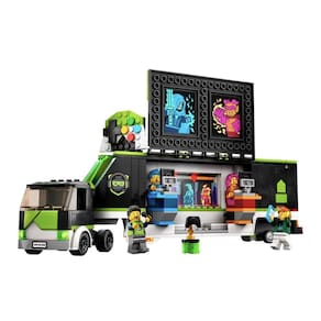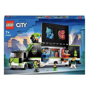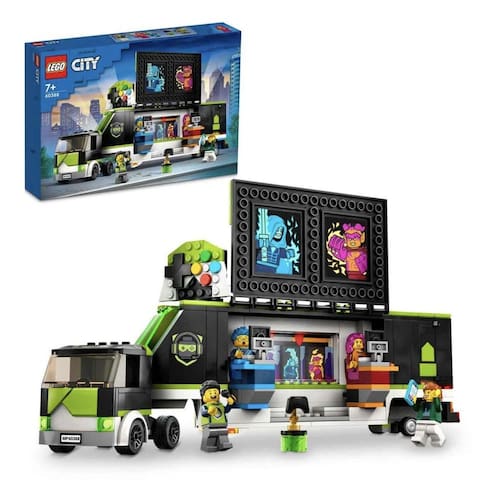 Brinquedo de veículo esportivo LEGO 60388 City Video Game Tournament Truck com minifiguras para jogadores, presente para meninos e meninas de 7 anos ou mais - Deixe que as crianças levem a ação de eSports para a cidade com este conjunto LEGO City The Video Game Tournament Truck: um caminhão de brinquedo montável, um apresentador e 2 minifiguras de jogos - O trailer se dobra para revelar a cena do torneio de jogos com 2 estações de jogos de computador de brinquedo e telas gigantes de estádio - Jovens fãs de videogame podem animar o jogue ação na tela do estádio de brinquedo e ajuste a barra de progresso das minifiguras na competição - Este brinquedo O caminhão possui acessórios interessantes, incluindo um troféu vencedor, microfone, celular e itens de jogo, como punhos grandes e uma espada de brinquedo. Este jogo de torneio de jogos LEGO City é um presente de aniversário ou diário para crianças de 7 anos ou mais que adoram jogos, esportes radicais e brinquedos de caminhão