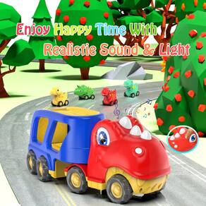 Caminhão de transporte de dinossauros - O caminhão tem algumas características que você não encontrará em muitos dos caminhões mais portáteis, incluindo a ação de tração movida a fricção. O caminhão grande simplesmente empurra e vai, muda a direção de direção girando a cabeça do carro; puxe o carro pequeno para trás, eles avançarão sozinhos, deixe seu filho dirigi-lo! - A maioria dos brinquedos para caminhões usa um mecanismo de empurrar e sair, porque as crianças não ficarão desapontadas com a falta de bateria. No entanto, você pode considerar se seu filho quer um caminhão que também tenha luzes e sons. O barulho do caminhão associado ao rugido do dinossauro é certamente único. Isso é ainda mais reforçado com iluminação, como luzes que fazem com que o caminhão dinossauro pareça ter olhos reais. - Os brinquedos para caminhões de dinossauros são feitos de plástico ABS não tóxico e sem BPA, o que significa que eles podem aguentar muitas surras — enfrentando tudo o que seus filhos enfrentam e jogam neles. E o contorno de cada carrinho de brinquedo foi projetado para ser muito suave, 100% amigável para crianças. Eles podem sobreviver a muitas quedas, quedas, colisões e impactos, o que os torna incrivelmente duradouros. - A aparência atraente é a chave para chamar a atenção de seus filhos. O tema dos dinossauros e as cores vivas podem facilmente despertar o interesse e atrair a atenção de seu filho. Quando uma criança brinca, ela também está aprendendo habilidades emocionais, desenvolvendo a capacidade de imaginação e a coordenação olho-mão. As crianças podem ficar menos ansiosas quando brincam, elas nem percebem que estão aprendendo. - Brinquedos de dinossauro para caminhões podem ser um ótimo investimento para qualquer criança. Eles são um excelente presente de aniversário ou Natal e podem ser utilizados por meninos ou meninas com mais de 18 meses. O atrito, o recuo, a luz e o som adicionam um nível adicional de interatividade, adicionando mais engajamento às brincadeiras temáticas de dinossauros do seu filho.