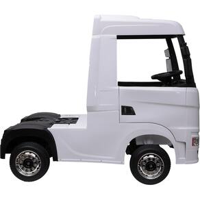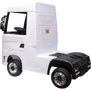 Com uma estrutura robusta e detalhes realistas, como teto, portas, retrovisores e faróis, o Caminhão Scania oferece uma experiência única. As crianças podem aproveitar sua trilha sonora preferida enquanto dirigem, graças à entrada USB, porta AUX e reprodutor de música integrados. Além disso, o sistema de tração 4x4 garante estabilidade em diversos tipos de terrenos, tornando cada passeio uma verdadeira aventura.
