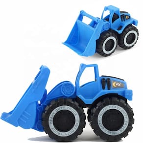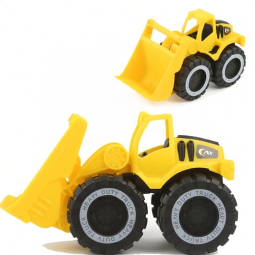 Fabricada em plástico resistente e com cores vibrantes, o brinquedo possui rodas grandes e robustas, além de uma pá móvel que simula de verdade o movimento de cavar e carregar terra, areia ou pedrinhas.