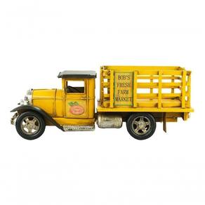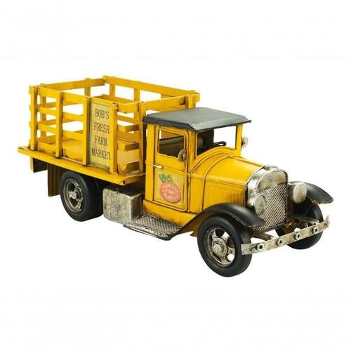 Enfeite decorativo em forma de um caminhão de feira amarelo com 14,5 x 14 x 37 cm de dimensão, detalhes e cores muito realista. Material: metal; Atenção: este produto tem apenas função decorativa, não é um brinquedo e nem um caminhão de verdade!