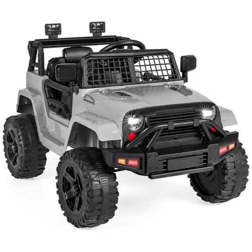 Este pequeno, porém poderoso caminhão elétrico é perfeito para crianças a partir de 3 anos que querem começar a dirigir como os adultos! Possui um design realista de 12V com cinto de segurança ajustável, faróis de LED brilhantes, portas traváveis e para-brisa gradeado para estilo off-road. Equipado com um motor de 12V e pneus de tração para rodar em diferentes terrenos. Permite que a criança dirija manualmente ou use o controle remoto para os pais guiarem com segurança, com controles de avanço e ré. Possui rodas de plástico que nunca esvaziam, sistema de suspensão por molas e velocidade máxima segura de 4,5 km/h para passeios suaves em aventuras ao ar livre. Além disso, possui uma saída AUX para as crianças conectarem dispositivos de mídia e dirigirem enquanto curtem sua própria seleção de música. Dimensões totais: 99,7cm comprimento x 66cm largura x 66cm altura. Capacidade de peso: 27,6 kg.