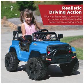 Para crianças a partir de 3 anos, este pequeno e poderoso caminhão elétrico é perfeito para os pequenos pilotos que querem começar a dirigir como os adultos! Possui um design realístico de 12V com cinto de segurança ajustável, faróis de LED brilhantes, portas bloqueáveis e para-brisa gradeado para um estilo off-road. Conta com motor de 12V, pneus de tração para diferentes terrenos e velocidade máxima de 2,8mph. Os pais podem optar por deixar a criança dirigir manualmente ou usar o controle remoto para orientá-los com segurança. Com rodas de plástico que nunca murcham, sistema de suspensão de molas e capacidade de peso de até 61 lbs para passeios suaves em aventuras ao ar livre. Além disso, possui uma entrada AUX para que as crianças possam conectar dispositivos de mídia e dirigir ao som de sua própria seleção de músicas.
