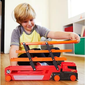 O Caminhão Mega Transporter - Hot Wheels – Mattel é um caminhão cegonheira para grandes aventuras e infinitas possibilidades de contar histórias. Este caminhão pode carregar até 50 carrinhos Hot Wheels e possui seis níveis expansíveis. Na parte traseira do caminhão há uma rampa que desce para conectar-se a conjuntos da coleção “Hot Wheels City”. A cabine do caminhão se abre com espaço para estacionar mais 2 veículos e o painel lateral transparente na lateral se abre para armazenamento. Informações: - Carrinhos Hot Wheels vendidos separadamente. - Recomendação: para crianças maiores de 3 anos de idade Aviso: - As imagens são meramente ilustrativas. As cores e estampas dos produtos podem variar. As informações são de responsabilidade do fabricante ou fornecedor.