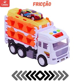 Caminhão Pista Fricção Lançador Carrinho Infantil - Castela DESCRIÇÃO DO PRODUTO Transforme a brincadeira em uma aventura cheia de ação com este incrível Caminhão Pista com Lançador Ideal para crianças apaixonadas por velocidade e diversão, esse brinquedo une luzes, sons realistas e movimento a fricção para uma experiência completa. Características do Produto: Caminhão grande com pista embutida Acompanha 1 carrinho de corrida Lançador de carrinhos: diversão garantida Efeitos de luz e som super animados Movimento a fricção: basta empurrar para acelerar Cores vibrantes e design moderno CARACTERÍSTICAS TÉCNICAS: Conteúdo da Embalagem: 01 Caminhão com pista retrátil e 01 Carrinho de corrida Dimensões Aproximadas do Produto: 9cm x 75cm x 6cm Altura x Largura x Comprimento/Profundidade . Dimensões Aproximadas da Embalagem: 23cm x 9cm x 15cm Altura x Largura x Comprimento/Profundidade . Material/composição: Plástico Idade Mínima Recomendada: A partir de 3 anos Participantes: A partir de 1 pessoa Alimentação: 3 Bateria AG13 Inclusas Marca: Castela Brasil Referência: CBS0617 Outras informações: As cores podem variar entre as imagens mostradas acima e o produto. Imagens meramente ilustrativas. Aviso: As informações e imagens divulgadas são de total responsabilidade do fabricante/fornecedor. APROVADO PELO INMETRO Homologação Inmetro: 00763/2021-BRINQ-1 Marca: Não Informado