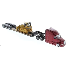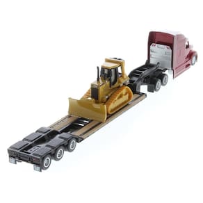 Caminhão Prancha e Trator De Esteira Caterpilla D5M 1/87 - cor: vermelho
